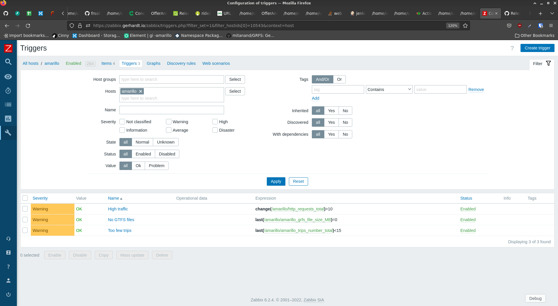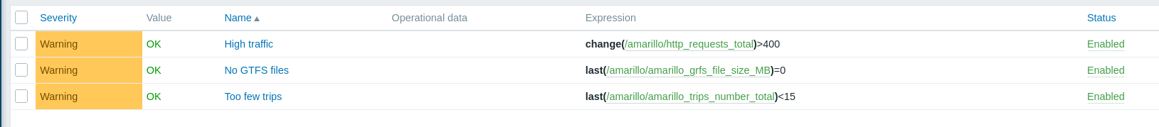 Configure alarms/alerts for Amarillo in Zabbix #7